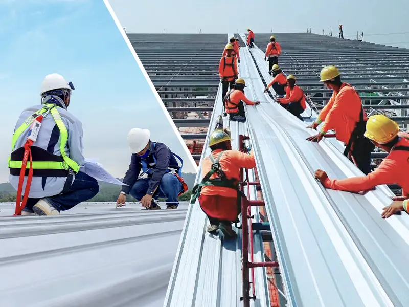 งานหลังคาถือเป็นงานที่มีความเสี่ยงสูง โดยเฉพาะในขั้นตอนการติดตั้งแผ่นหลังคา การรีดแผ่นบนหลังคาที่หน้างาน (On-site rollforming) หรือการซ่อมบำรุงบนหลังคา ซึ่งอันตรายจากอุบัติเหตุเกิดขึ้นได้เสมอ ไม่ว่าจากการลื่น หรือตกจากหลังคา หากขาดมาตรการด้านความปลอดภัยที่เหมาะสม