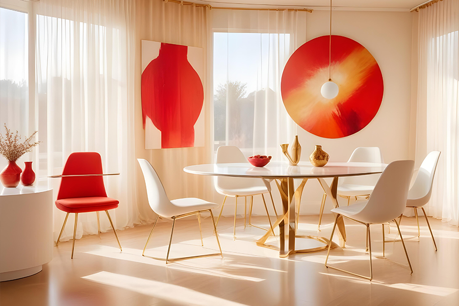 - สีหลัก : โทนอบอุ่น เช่น สีเทาเข้ม, สีส้มอมน้ำตาล, สีเขียวอมเทาอ่อน, สีน้ำตาล เพื่อเสริมพลังไฟ