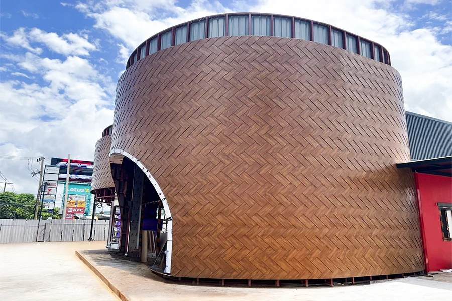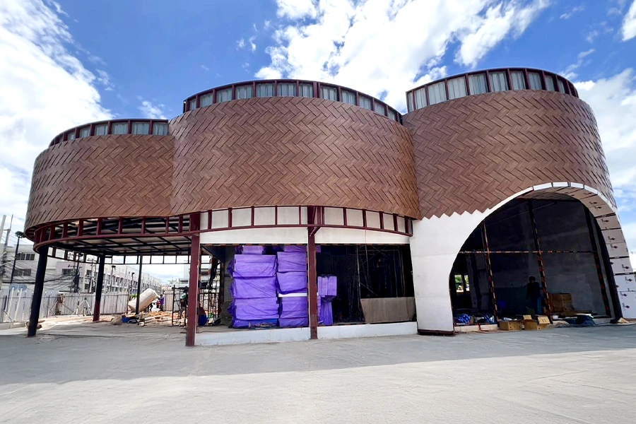 การตกแต่งผนังอาคาร ด้วย KS Wicker Facade เหล็กลายไม้ลายสานนี้ เป็นการผสมผสานความงามเชิงวัฒนธรรมเข้ากับวัสดุสมัยใหม่ของแผ่นเหล็กเคลือบลายไม้ สะท้อนความงดงามและมิติใหม่ให้อาคาร โดย Facade นี้จะเป็นอีกหนึ่งทางเลือกให้กับสถาปนิก ผู้ออกแบบ เพื่อจะได้รังสรรค์ผลงานได้โดดเด่น แตกต่างยิ่งกว่าเดิมกันครับ