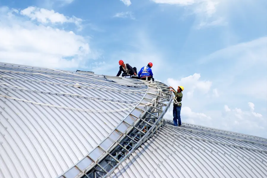 งานหลังคาถือเป็นงานที่มีความเสี่ยงสูง โดยเฉพาะในขั้นตอนการติดตั้งแผ่นหลังคา การรีดแผ่นบนหลังคาที่หน้างาน (On-site rollforming) หรือการซ่อมบำรุงบนหลังคา ซึ่งอันตรายจากอุบัติเหตุเกิดขึ้นได้เสมอ ไม่ว่าจากการลื่น หรือตกจากหลังคา หากขาดมาตรการด้านความปลอดภัยที่เหมาะสม