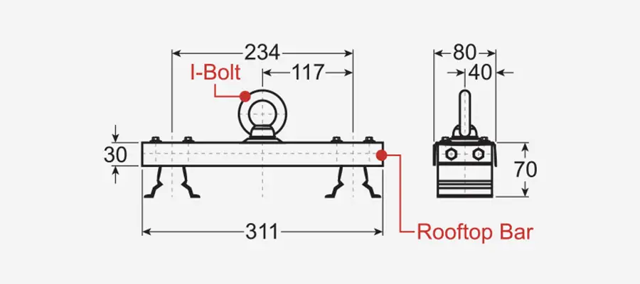 - Safety Rooftop 325BL with side screw (กรณีเลือกใช้ขา connector)