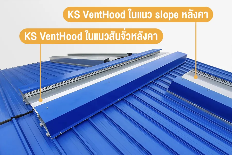 - อากาศร้อนใต้หลังคามักมีความร้อนลอยตัวสะสม การติด KS VentFlow หรือ KS VentHood จะทำให้ความร้อนไหลออกจากหลังคาได้อย่างต่อเนื่อง