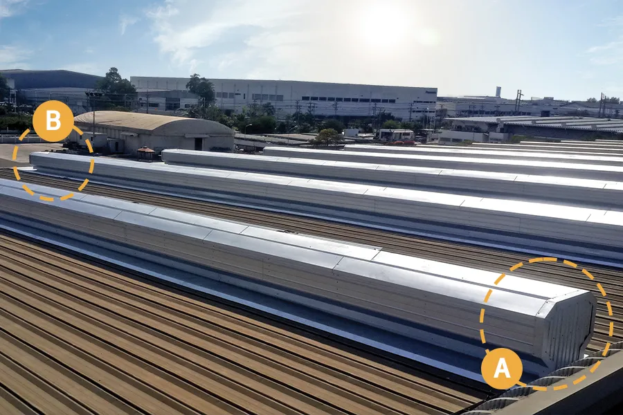 อากาศร้อนสะสมใต้หลังคา คือ สาเหตุหลักของความอบอ้าวภายในอาคารโรงงาน ในกรณีที่มีกิจกรรมภายในโรงงาน เช่น การทำงานของเครื่องจักร มีเตาเผา หรือ อุปกรณ์ที่ก่อให้เกิดความร้อน จะยิ่งเพิ่มความร้อนระอุภายในอาคารโรงงงานมากขึ้นไปอีก ส่งผลให้เครื่องปรับอากาศทำงานหนัก อากาศไม่ถ่ายเท และค่าไฟเพิ่มขึ้นโดยไม่จำเป็น